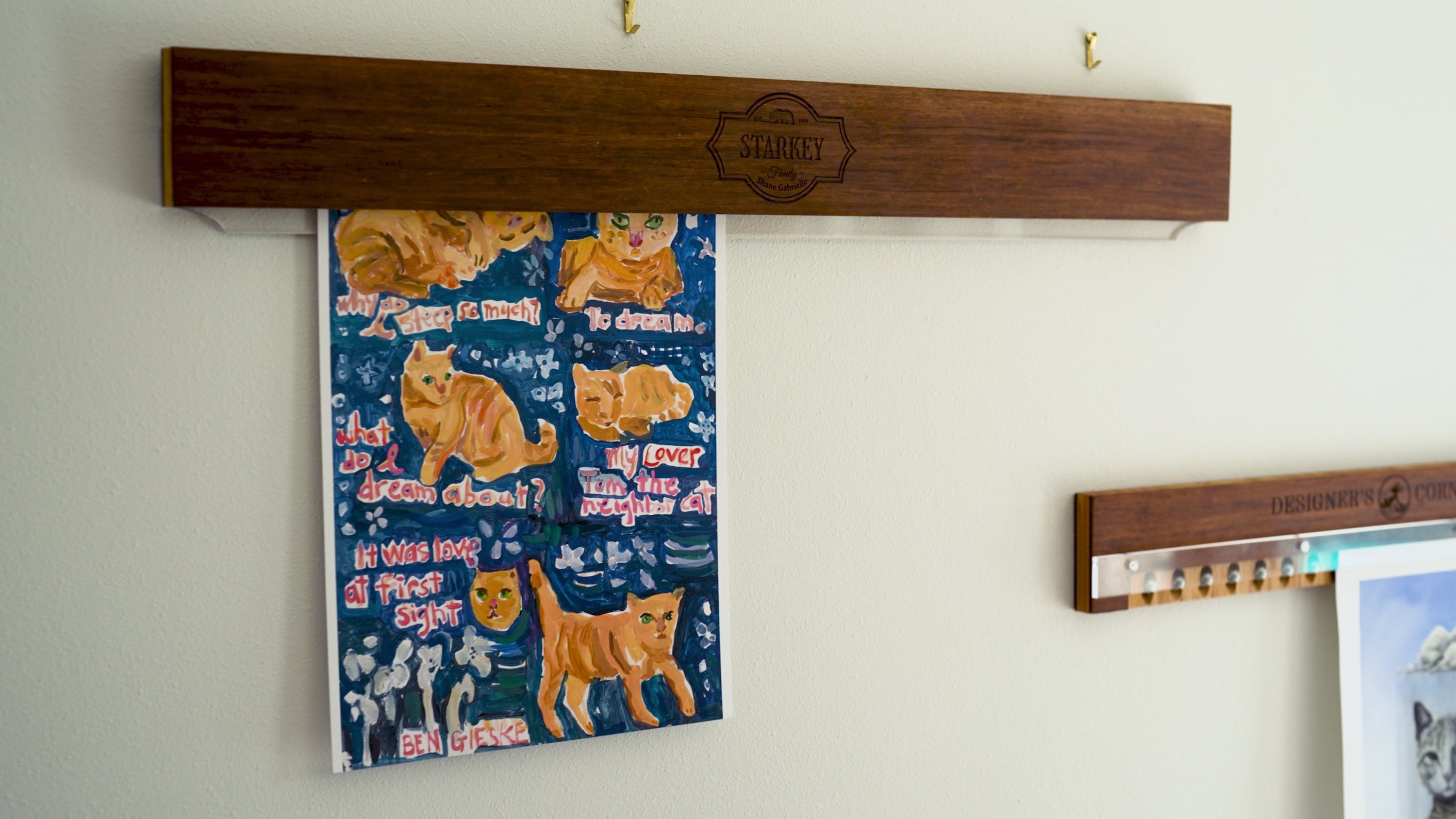 The Left Coast Original Minimal Gallery Bar is a sleek and versatile display solution for artwork, pictures, or notes. Crafted from sustainable bamboo, this stylish gallery bar features a unique interior mechanism that securely holds your work in place—simply slide it in, and it's instantly ready to be showcased.