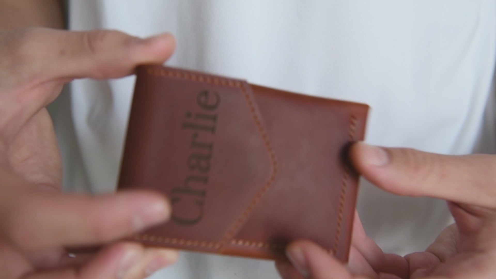 Crafted from premium full-grain leather, the Saddle wallet will age beautifully, gaining character and patina with each use. The engraved area will show a natural variation in color and tone.