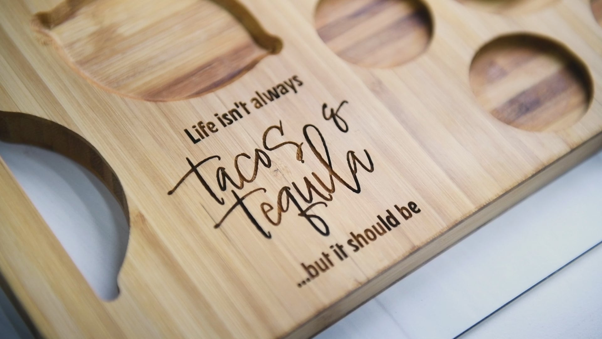 Imagine the cheers as we turn the corner and everyone sees the round of shots you bring on this custom, handcrafted piece. Customize this with your name or favorite quote with one of our font options or choose from our post worthy designs. Get one for every table at your shower, serve as door prizes, or simply supply your friend's home bar so you are always ready to shoot the breeze with shots and friends.