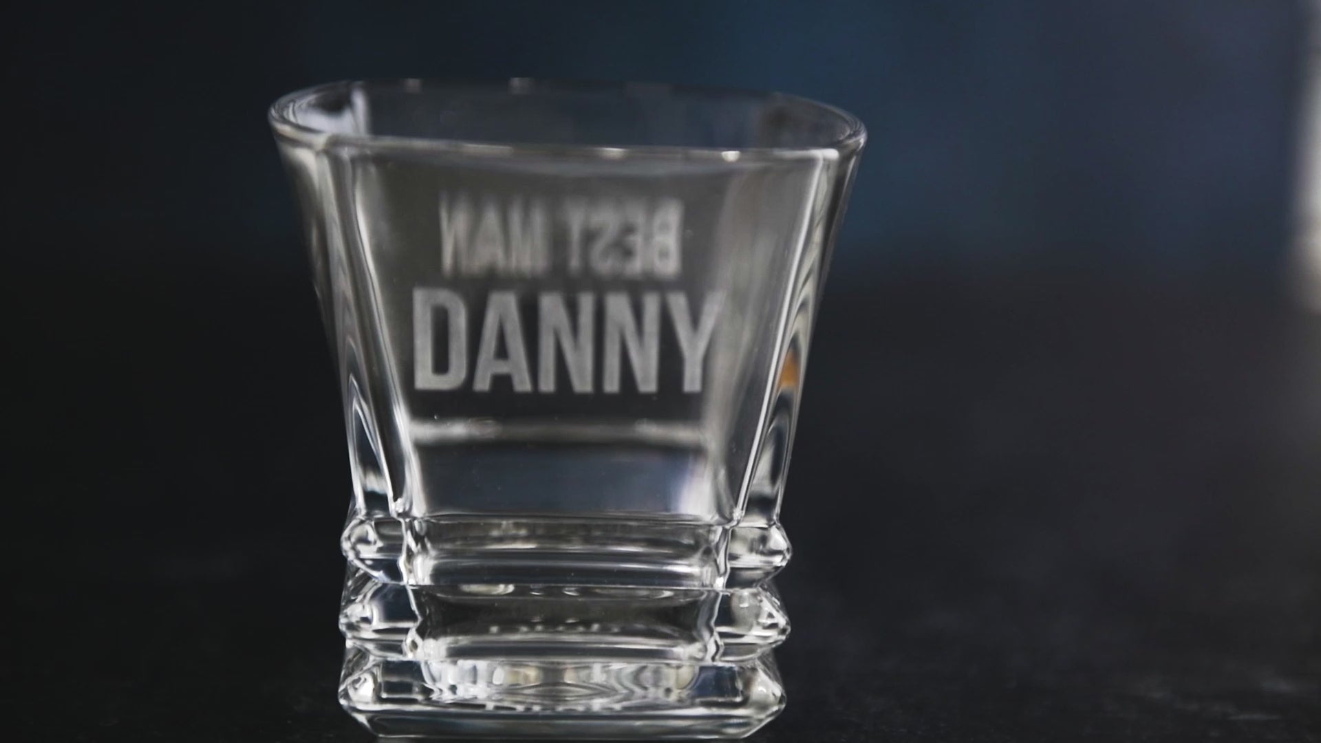 Whiskey Glasses have a bottom engraving location as well as a “front” and “back” option on opposite sides of the glass walls.